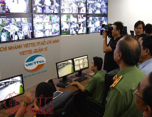Lực lượng công an quận 12 triển khai hệ thống camera giám sát và trung tâm xử lý hình ảnh. |