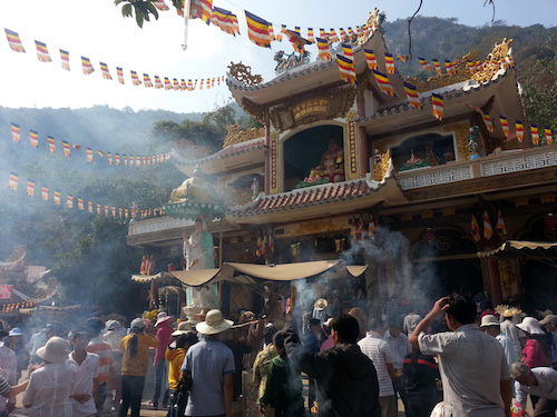 Nhiều du khách thập phương đi viếng chùa trên núi Bà, Tây Ninh vào những ngày đầu năm. |