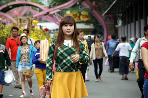 Thiếu nữ khoác bộ cánh xinh tươi trong sắc xuân rực rỡ. |