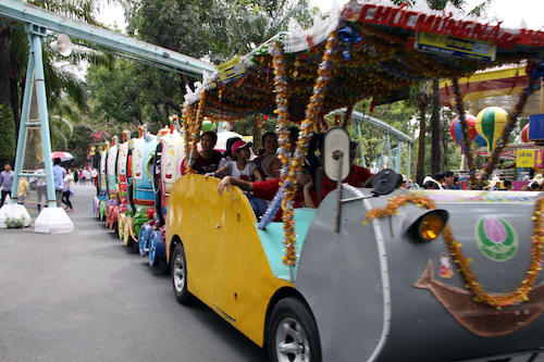 Buổi sáng mùng 3 Tết, những con đường ở thành phố Hồ Chí Minh còn vắng lặng, thưa bóng người thì các khu du lịch như Đầm Sen đã thu hút hàng nghìn người dân đến vui xuân. Anh Huỳnh Văn Long, ngụ tại quận 8 chia sẻ: “Một năm làm việc vất vả nên những ngày này, tôi giành hết thời gian cho vợ con mình. Các con của tôi rất phấn khích khi được bố mẹ đưa đi chơi”.