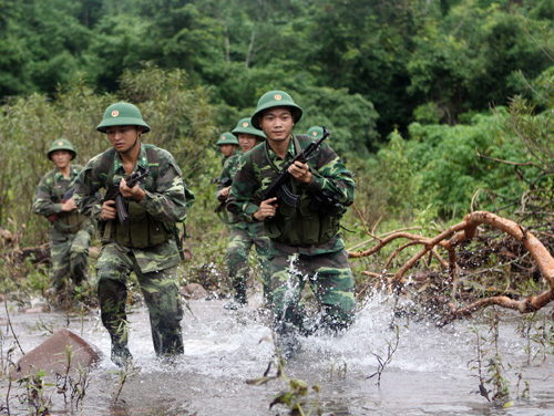 Bộ đội Biên phòng đồn Leng Su Shin tập huấn tuần tra, chống tội phạm vùng biên. |