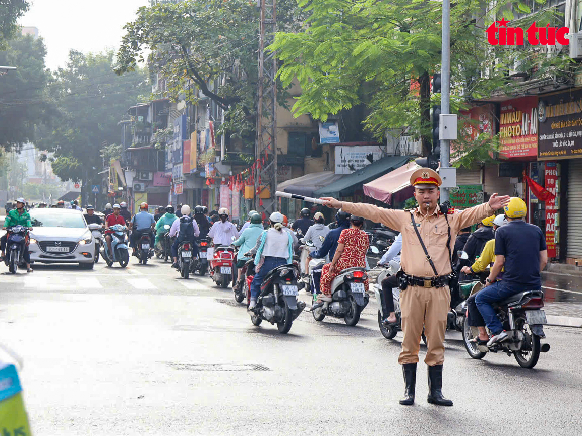 CSGT Hà Nội đã được tăng cường túc trực để phân luồng giao thông từ xa; hướng dẫn phương tiện di chuyển an toàn.