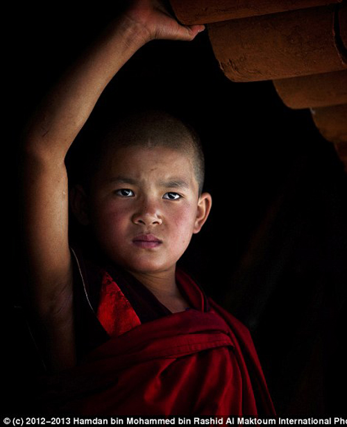 Một thầy tu trẻ phóng ánh mắt nhìn ra xa.