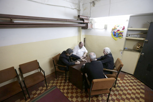 Một vài nghệ sĩ chơi domino để thư giãn trước buổi biểu diễn.