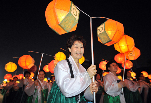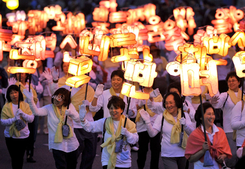 Khi màn đêm buông xuống cũng là lúc những người theo đạo Phật hào hứng hòa vào dòng người diễu hành với những chiếc đèn lồng thắp sáng những con đường ở Seoul.