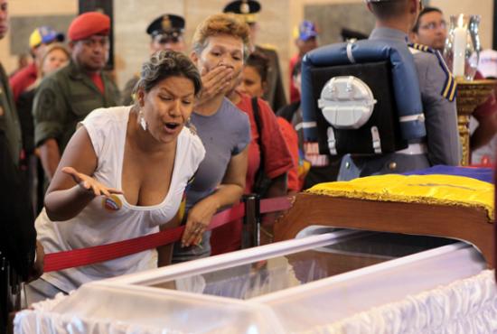 Tại Học viện Quân sự Bolivar, nơi diễn ra lễ tang chính thức trong những ngày qua, hàng triệu người dân Venezuela đã xếp hàng dài chờ đến lượt được vào chào vĩnh biệt nhà lãnh đạo kính yêu của mình lần cuối. Sự ra đi của Tổng thống Hugo Chavez là tổn thất lớn lao đối với đất nước và nhân dân Venezuela. Dưới đây là một số hình ảnh nhói lòng trước mất mát mà người dân Venezuela đang phải gánh chịu: