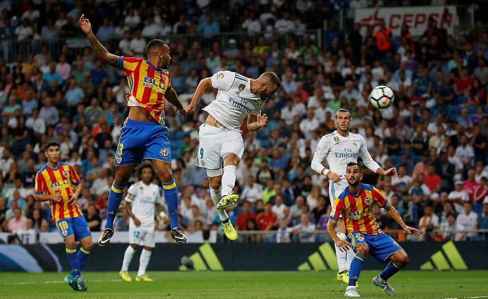 Real sớm có bàn thắng vượt lên nhờ công của tiền đạo trẻ đang lên phong độ Marco Asensio sau sai lầm của đối phương. Cầu thủ nghi bàn mở tỷ số là Ansensio với pha đột phá rồi sút cứa lòng chính xác hạ thủ môn Valencia ở phút thứ 10. Bàn thắng đẹp mắt của Asensio khiến bầu không khí ở sân Bernebeu thêm máu lửa và hưng phấn.