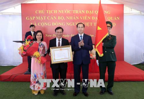 Nhân dịp này, thay mặt lãnh đạo Đảng, Nhà nước, Chủ tịch nước Trần Đại Quang đã trao tặng Huân chương Lao động hạng Nhì cho tập thể Đại sứ quán Việt Nam tại Ấn Độ.