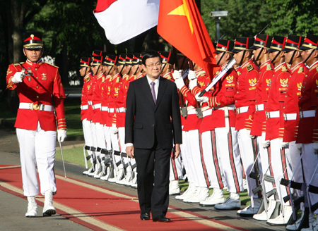 Ngày 18/7, Người phát ngôn Bộ Ngoại giao Lương Thanh Nghị cho biết, nhận lời mời của Tổng thống Hợp chúng quốc Hoa Kỳ Barack Obama, Chủ tịch nước Trương Tấn Sang sẽ thăm chính thức nước này từ ngày 24 – 26/7/2013. Chuyến thăm khẳng định đường lối đối ngoại độc lập, tự chủ, hòa bình, hợp tác và phát triển, đa phương hóa, đa dạng hóa quan hệ, chủ động, tích cực hội nhập quốc tế của Việt Nam. Chủ tịch nước Trương Tấn Sang trong chuyến thăm Indonesia chiều 27/6. Ảnh: Nguyễn Khang/TTXVN |
