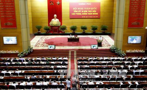 Toàn cảnh Hội nghị toàn quốc tổng kết 10 năm thực hiện Luật phòng, chống tham nhũng diễn ra hồi tháng 7 tại Hà Nội. Ảnh: An Đăng/TTXVN |