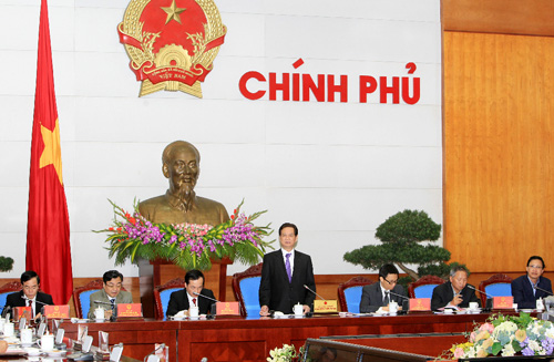 Thủ tướng Nguyễn Tấn Dũng phát biểu kết luận buổi làm việc với lãnh đạo chủ chốt tỉnh Nam Định. Ảnh: Đức Tám – TTXVN |