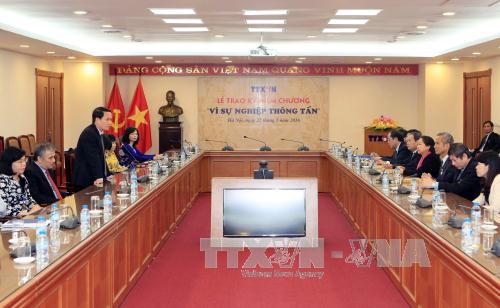 Đồng chí Nguyễn Đức Lợi, Uỷ viên Trung ương Đảng, Tổng Giám đốc TTXVN đã trân trọng trao: Kỷ niệm chương "Vì sự nghiệp Thông tấn" tặng Chủ tịch Tổng Liên đoàn Lao động Việt Nam Đặng Ngọc Tùng và các Phó Chủ tịch Trần Thanh Hải, Mai Đức Chính, Nguyễn Văn Ngàng, Trần Văn Lý; Bằng khen tặng Phó Chủ tịch Tổng Liên đoàn Lao động Việt Nam, Chủ tịch Công đoàn viên chức Việt Nam Nguyễn Thị Thu Hồng, ghi nhận những đóng góp của các đồng chí lãnh đạo Tổng Liên đoàn Lao động Việt Nam trong việc chỉ đạo, phối hợp với Thông tấn xã Việt Nam đẩy mạnh công tác tuyên truyền về phong trào công nhân viên chức lao động và hoạt động công đoàn; đóng góp xứng đáng vì sự nghiệp phát triển của Thông tấn xã Việt Nam.