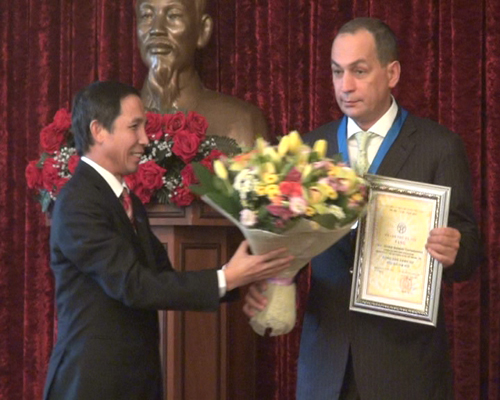 Giáo sư, tiến sĩ khoa học Vladimir Buianov đã được trao danh hiệu trên trong chuyến thăm Việt Nam hồi tháng 10, dự lễ kỷ niệm 15 năm ngày Hà Nội được vinh danh là thành phố vì hòa bình.