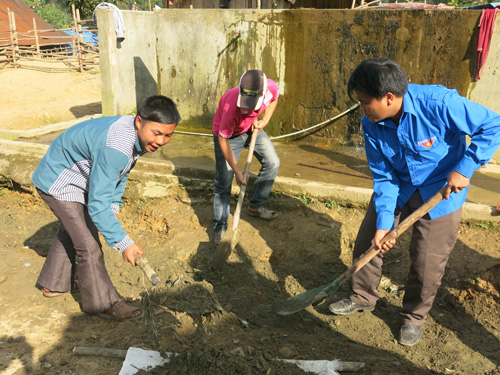 Thanh niên huyện Mường Khương, tỉnh Lào Cai tham gia làm đường giao thông nông thôn mới. |