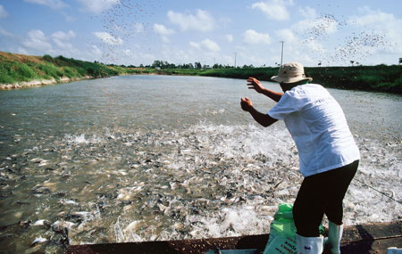 Tỉnh phấn đấu đến năm 2015 có 200 tổ hợp tác khai thác và phát triển thủy sản trên biển tại các huyện Quỳnh Lưu, Diễn Châu, Nghi Lộc, Cửa Lò. Một hộ nuôi cá ở Nghệ An. Ảnh minh họa: agroviet.gov.vn |