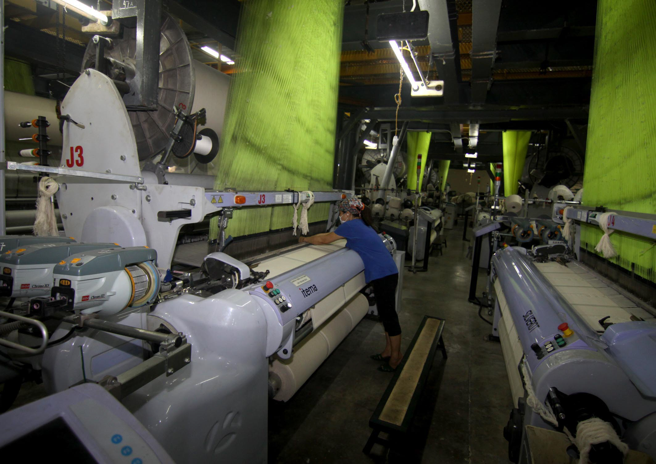 Sản xuất khăn bông tại Công ty CP dệt Hà Đông Hanosimex. Ảnh Vũ Sinh- TTXVN |