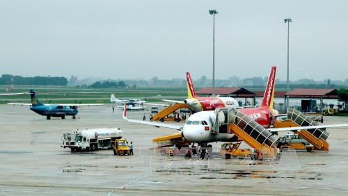 Máy bay của VietjetAir tại Cảng Hàng không Quốc tế Nội Bài (Hà Nội). Ảnh: Huy Hùng – TTXVN |
