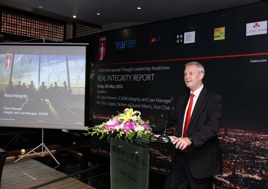 Ông David Stevens - Chuyên gia về các vấn đề liên quan đến quy chuẩn đạo đức và thị trường của ICAEW, phát biểu tại tọa đàm. |