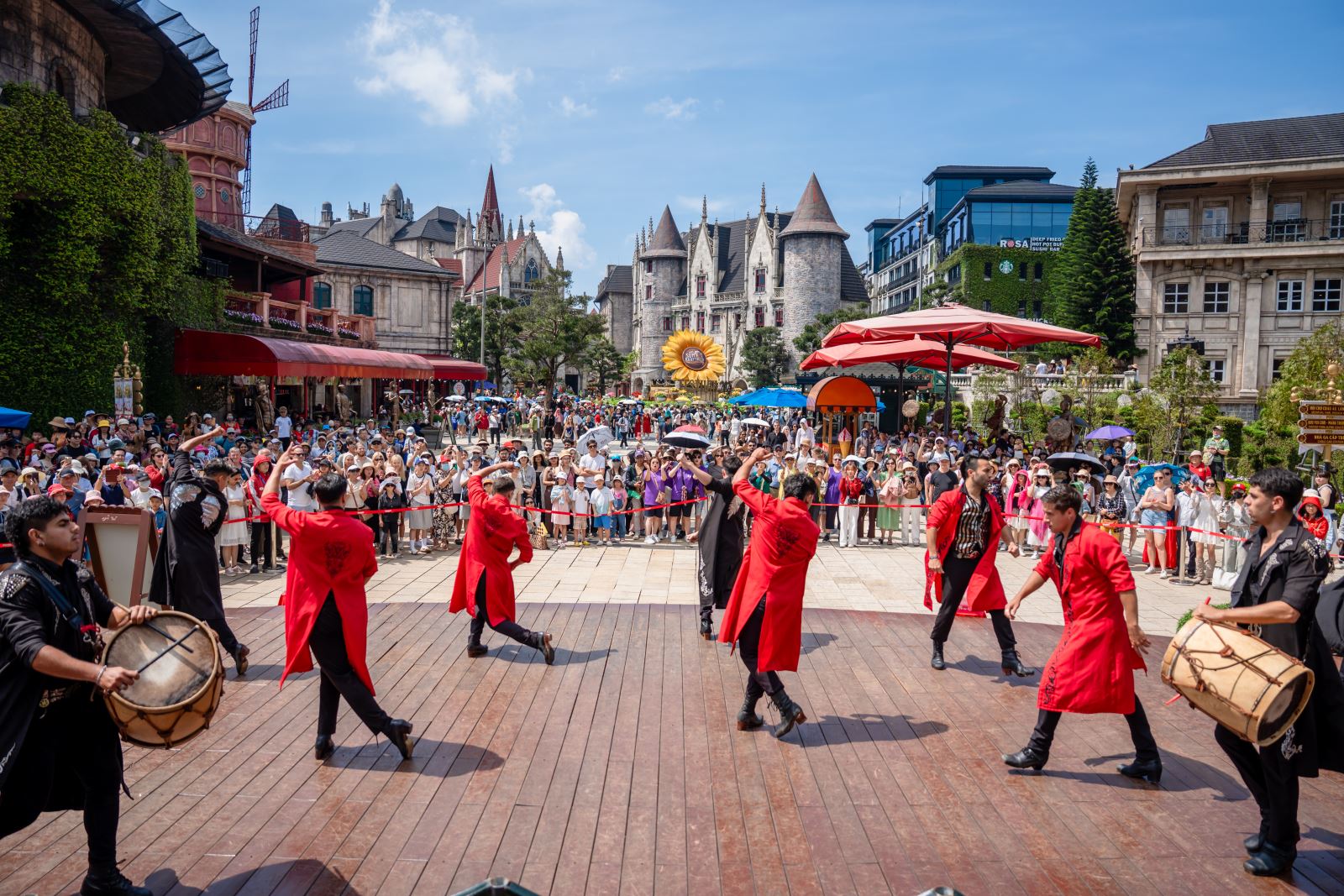 Không khí lễ hội tại "châu Âu thu nhỏ" này còn tưng bừng với những minishow hấp dẫn diễn ra ở nhiều địa điểm và vào các khung giờ khác nhau. Những màn trình diễn nghệ thuật đa dạng như độc tấu đàn tranh, múa Cancan, trình diễn múa trống Malambo hứa hẹn mang đến những giây phút giải trí thú vị và những cảm xúc khó quên.