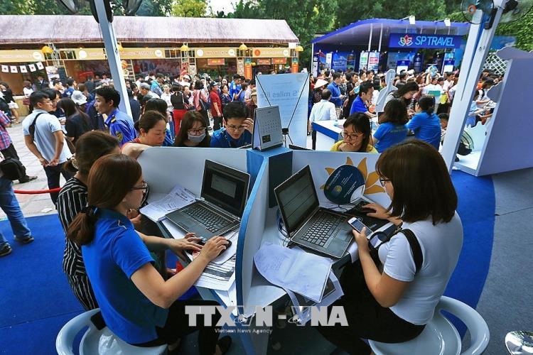 Khách tham quan Hội chợ Du lịch Quốc tế Việt Nam - VITM Hà Nội 2018 với chủ đề “Du lịch trực tuyến, du lịch Việt Nam hướng tới cuộc cách mạng công nghiệp 4.0”. Ảnh: Trọng Đạt/TTXVN |