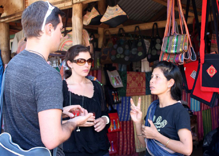 Người dân trong làng đã tự học tiếng Anh để giới thiệu cho du khách về phong tục tập quán của làng. Ảnh: Nguyễn Dũng/dTTXVN |