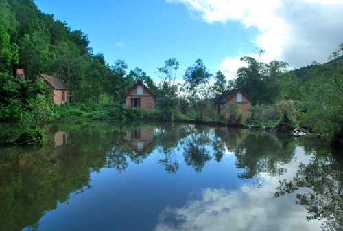 Ông Hùng cho biết: “Qua 15 năm hình thành và phát triển, trang trại đã có 2 ha chuyên trồng các loại cây bản địa quý hiếm như kiền kiền, sao đen, chò; diện tích mặt nước hồ bơi, hồ sinh thái, hồ nuôi cá rộng 0,6 ha; 1 ha dành cho cây ăn quả và cây lấy bóng mát như mai (1.000 cây), điền trúc (1 ha) đào, cau…; rừng keo lá tràm (26 ha); tự làm thủy điện 15 kW, phục vụ điện cho trang trại và khu vực; 12 nhà nghỉ, 2 hội trường (sức chứa 400 người) và gần 70 nhà lều các loại. Trang trại còn phục vụ tổ chức hội nghị, các chương trình sinh hoạt lửa trại và các hoạt động văn hóa, văn nghệ khác. Mỗi năm thu từ măng tre điền trúc (100 triệu đồng), thu từ mai, cây cảnh 50 triệu đồng, thu từ nuôi cá 20 triệu đồng, thu từ chăn nuôi heo lai rừng (100 triệu đồng).
