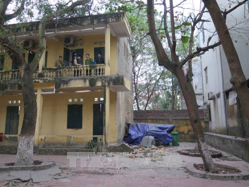 Hiện trường vụ đổ lan can tầng 2 tại trường Tiểu học Văn Môn, huyện Yên Phong, tỉnh Bắc Ninh. Ảnh: TTXVN |