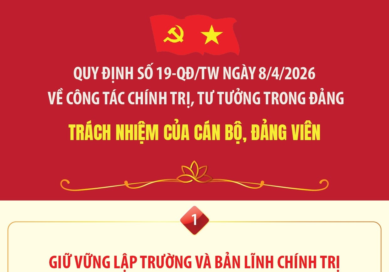 Thay mặt Ban Chấp hành Trung ương Đảng, Tổng Bí thư Tô Lâm đã ký ban hành Quy định số 19-QĐ/TW ngày 8/4/2026 về công tác chính trị, tư tưởng trong Đảng. (đọc thêm)