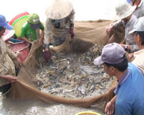 Nông dân huyện Giồng Riềng thu hoạch tôm càng xanh. Ảnh: nhandan.com.vn |