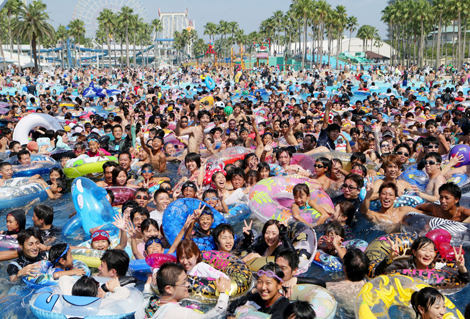 Người dân ở thành phố Kuwana, miền trung Nhật Bản đổ xô tới các bể bơi giải nhiệt. Ảnh: AFP/TTXVN |