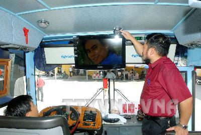 Hộp đen được lắp đặt trên xe khách tuyến Hạ Long - Hà Nội. Ảnh: Nguyễn Đán/TTXVN |