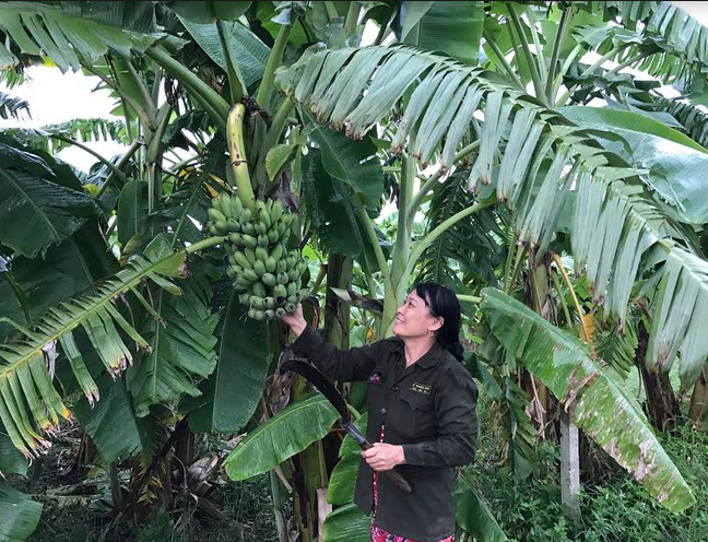 Bà Phan Thị Nhuận thu hoạch chuối. |