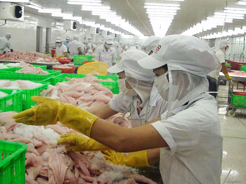 Chế biến cá tra xuất khẩu ở đồng bằng sông Cửu Long. |
