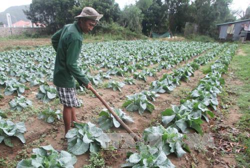 Gia đình ông Đoàn Văn Dinh, ở khu 2 Côn Đảo vay 20 triệu đồng từ chương trình cho vay hộ cận nghèo, đầu tư cải tạo mở rộng diện tích trồng rau xanh, chăn nuôi bò, kinh tế gia đình từng bước ổn định. Ảnh: Trần Việt - TTXVN