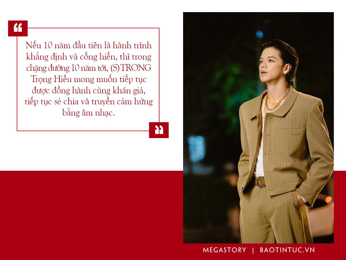 Nếu 10 năm đầu tiên là hành trình khẳng định và cống hiến, thì trong chặng đường 10 năm tới, (S)TRONG Trọng Hiếu mong muốn tiếp tục được đồng hành cùng khán giả, tiếp tục sẻ chia và truyền cảm hứng bằng âm nhạc.