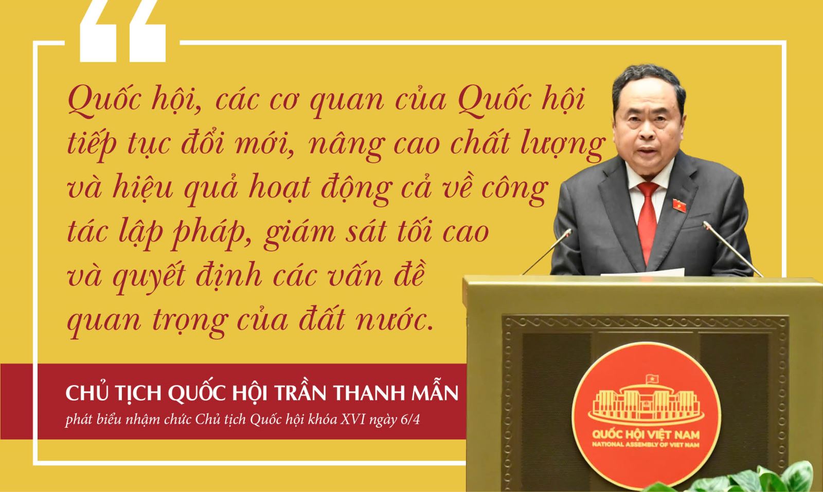 Trong ngày làm việc đầu tiên, Quốc hội đã bầu ông Trần Thanh Mẫn giữ chức Chủ tịch Quốc hội khóa XVI. Phát biểu nhậm chức, Chủ tịch Quốc hội Trần Thanh Mẫn nhấn mạnh sẽ nguyện cống hiến hết sức mình, phụng sự Tổ quốc, phục vụ nhân dân; cùng Quốc hội tiếp tục đổi mới, nâng cao chất lượng và hiệu quả hoạt; phát huy dân chủ, đoàn kết, công khai, minh bạch, chuyên nghiệp, góp phần xây dựng Nhà nước pháp quyền xã hội chủ nghĩa thực sự của nhân dân, do nhân dân và vì nhân dân.