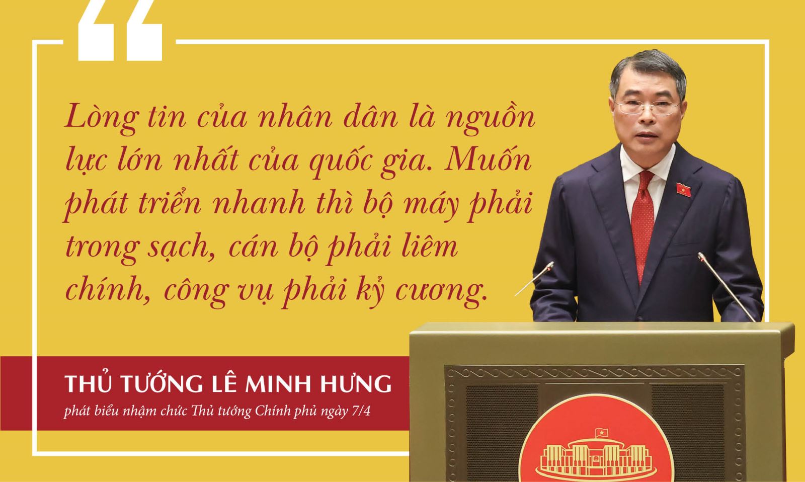 Đồng thời, Thủ tướng cũng chia sẻ: “Tôi ý thức sâu sắc rằng, lòng tin của nhân dân là nguồn lực lớn nhất của quốc gia. Muốn phát triển nhanh thì bộ máy phải trong sạch, cán bộ phải liêm chính, công vụ phải kỷ cương. Chính phủ cam kết hành động với quyết tâm cao nhất, đặt lợi ích quốc gia, dân tộc và hạnh phúc của nhân dân lên trên hết, trước hết”.