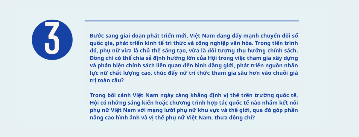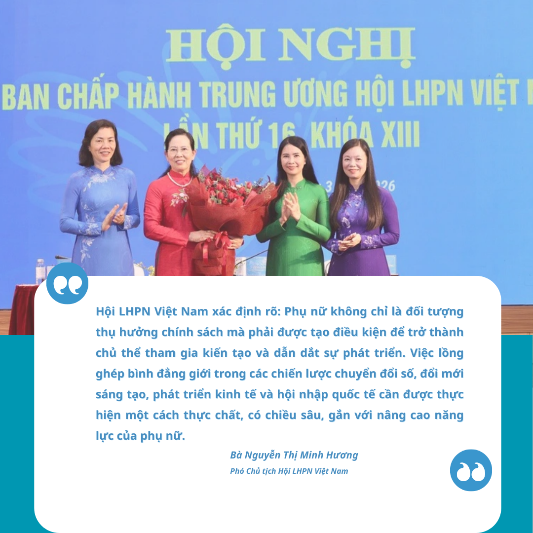 Trong bối cảnh đó, Hội LHPN Việt Nam xác định rõ: Phụ nữ không chỉ là đối tượng thụ hưởng chính sách mà phải được tạo điều kiện để trở thành chủ thể tham gia kiến tạo và dẫn dắt sự phát triển. Việc lồng ghép bình đẳng giới trong các chiến lược chuyển đổi số, đổi mới sáng tạo, phát triển kinh tế và hội nhập quốc tế cần được thực hiện một cách thực chất, có chiều sâu, gắn với nâng cao năng lực của phụ nữ.