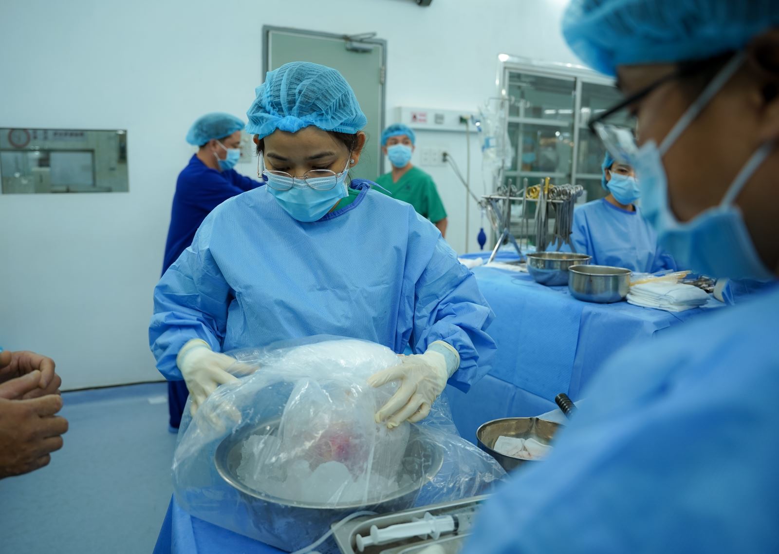 Đúng 3 giờ 30 phút ngày 18/10, sau nghi thức tri ân, ca phẫu thuật lấy mô, tạng được tiến hành. Ảnh: BV