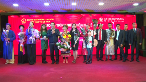 Đại sứ Nguyễn Thanh Sơn bày tỏ lòng biết ơn đối với tập thể nghệ sỹ Nhà hát Chèo và Cải lương tỉnh Thái Bình mang lời ca, tiếng hát sang động viên tinh thần bà con, cộng đồng người Việt Nam tại LB Nga.