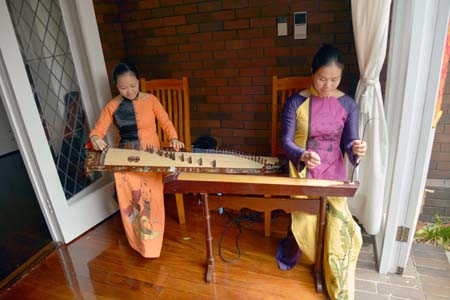 Theo phóng viên TTXVN tại Australia, chiều 25/1, Tổng Lãnh sự quán Việt Nam tại Sydney đã tổ chức buổi gặp mặt thân mật nhân dịp Tết cổ truyền Giáp Ngọ 2014. Màn trình diễn nhạc cun cổ truyền. Ảnh: Quang Minh (Pv TTXVN tại Australia) |