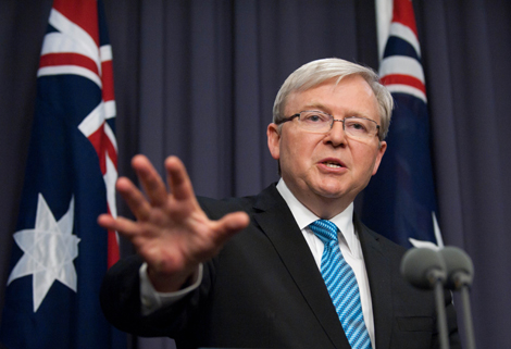 Tân Thủ tướng Australia Kevin Rudd phát biểu tại Nghị viện sau khi nhậm chức ngày 28/6/2013. Ảnh: THX/TTXVN |