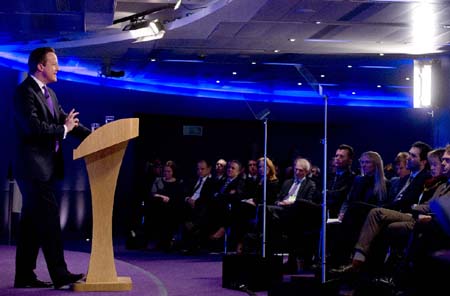 Trong một bài diễn văn tại thủ đô Luân Đôn, ông Cameron cho biết, nếu Đảng Bảo thủ của ông giành chiến thắng trong cuộc tổng tuyển cử vào năm 2015 thì cuộc trưng cầu ý dân sẽ được tiến hành vào cuối năm 2017 để các cử tri được lựa chọn việc rời khỏi hay ở lại EU. Ông nói ông muốn thương lượng lại các điều khoản về tư cách thành viên EU của nước Anh trước khi đưa thỏa thuận mới ra trưng cầu ý dân.