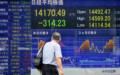Thị trường chứng khoán tại Toyko giảm điểm do những lo ngại từ Mỹ. Ảnh: AFP/TTXVN |