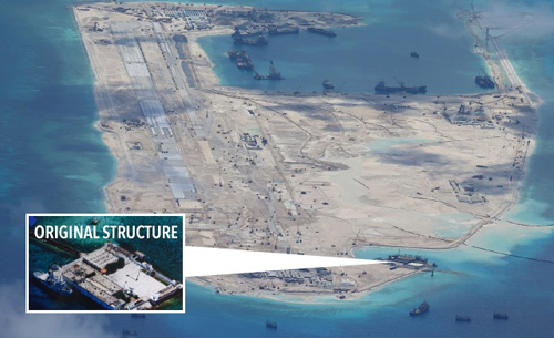 Hoạt động xây "đảo nhân tạo" trái phép của Trung Quốc tại bãi Chữ Thập. Ảnh: Reuters |