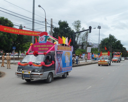 Sáng 26/6, tại sân Quảng trường Trung tâm Hội Nghị - Văn hóa tỉnh Điện Biên diễn ra Lễ ra quân diễu hành cổ động PCMT. Sau lễ khai mạc, các đoàn xe treo đầy băng rôn, khẩu hiệu tuyên truyền PCMT đã đi diễu hành trên các đường phố của thành phố Điện Biên Phủ.