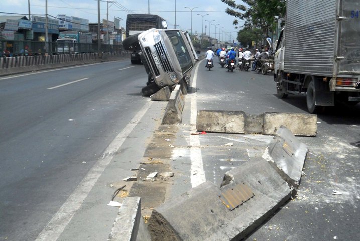 Thông tin ban đầu cho biết, vào thời điểm trên xe ô tô 7 chỗ mang BKS 51A-477.80 lưu thông trên quốc lộ 1 (phường Tân Thới Nhất, quận 12, TP HCM) hướng từ ngã tư Gò Mây về ngã tư An Sương. Khi vừa qua cổng Khu công nghiệp Vĩnh Lộc được một đoạn thì tài xế mất lái, khiến xe ô tô đâm vào dải phân cách, hất văng nhiều khối be tông vào làn đường xe máy.