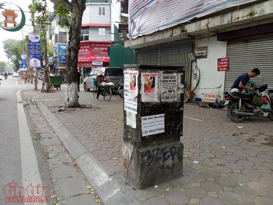 Quảng cáo rao vặt sai quy định dán tràn lan khắp phố phường. |