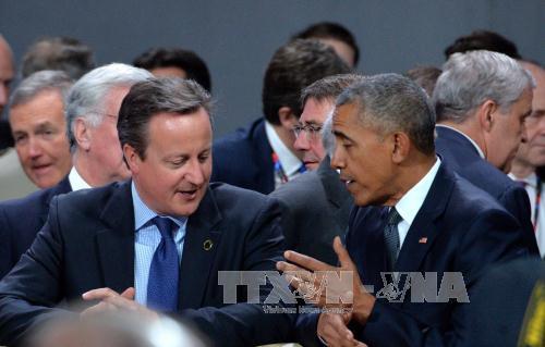 Thủ tướng Anh David Cameron (trái) và Tổng thống Mỹ Barack Obama tại hội nghị NATO. Ảnh: EPA/TTXVN |