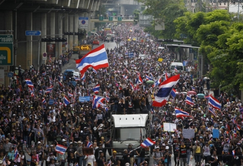 Ngày 8/1, Thư ký thường trực Bộ Ngoại giao Thái Lan Sihasak Phuangketkaew cho biết các đại sứ quán nước ngoài tại Bangkok đã bày tỏ lo ngại về tình hình chính trị Thái Lan trong bối cảnh Ủy ban Cải cách Dân chủ Nhân dân (PDRC) đối lập lên kế hoạch "chiếm đóng thủ đô" vào ngày 13/1.Người biểu tình tràn ngập đường phố Bangkok. |